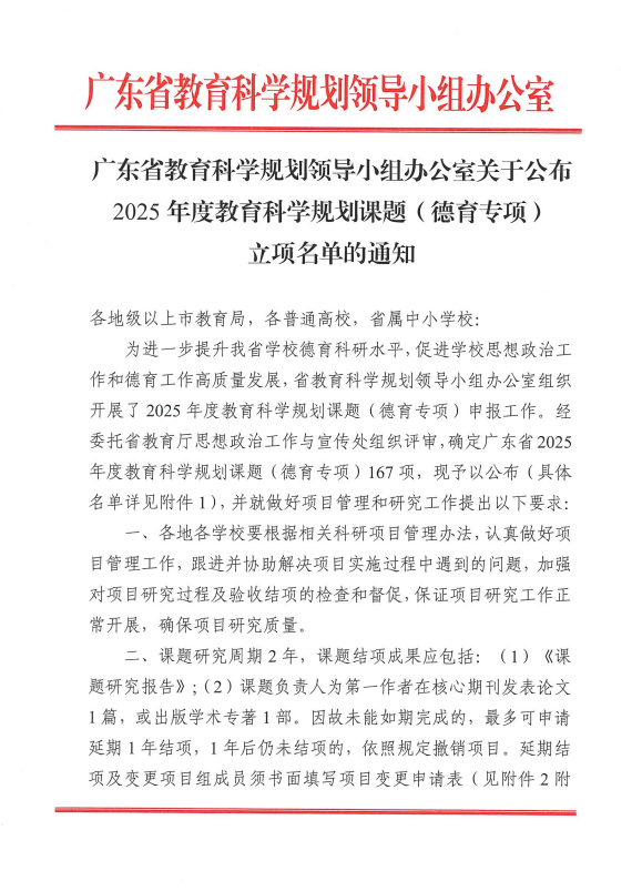 2026近日,广东省教育厅与广东省教育科学规划领导小组办公室相继公布了2025年度相关课题立项名单,广东省教育科学规划(德育)专项立项167项,广东省高校思想政治教育课题立项258项。威廉希尔中文网站此次申报获批3项课题立项,其中,广东省教育科学规划课题(德育专项)2项、广东省高校思想政治教育课题1项。学生处陈梅副教授主持申报的德育专项课题“同伴排斥对大学生不确定心理压力的影响机制与干预研究”(项目编号:2025JKDY074)聚焦于同...