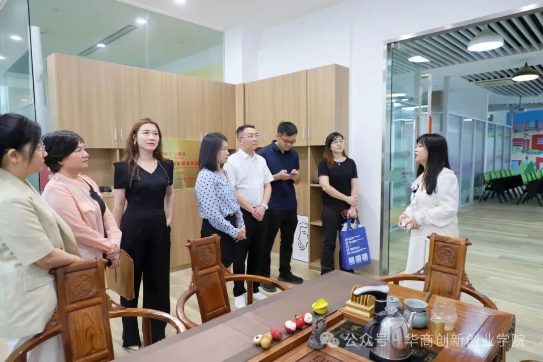 会前,朱燕妮会长一行先后参观了桃花岛电商实训基地、中手游华商动漫游戏工作坊、华商众创孵化基地等教学实训场地,对学校环境和实训实验基地建设给予了高度的评价。