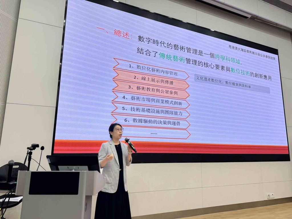 随后,澳城大创意设计学院安舜教授带来“数字时代的艺术管理——粤港澳大湾区艺术展示与公共参与初探”专题讲座。讲座围绕数字环境下文化艺术的运营逻辑与项目管理展开,结合澳门本地文化实践案例,探讨了艺术策展、跨界协作、地域文化与数字博物馆建设等热点议题,为教师们带来了前沿理念与教学启发。