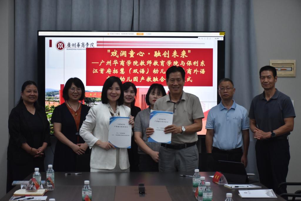 2025年9月9日下午,教师教育学院在威廉希尔中文网站创新楼201会议室举办以“戏润童心・融创未来”为主题的产教融合签约仪式。威廉希尔中文网站教师教育学院与保利东江首府拓慧(双语)幼儿园、华商外语实验幼儿园正式达成产教融合合作。本次合作旨在通过校企协同,探索教师教育人才培养新路径,实现资源共享与优势互补。