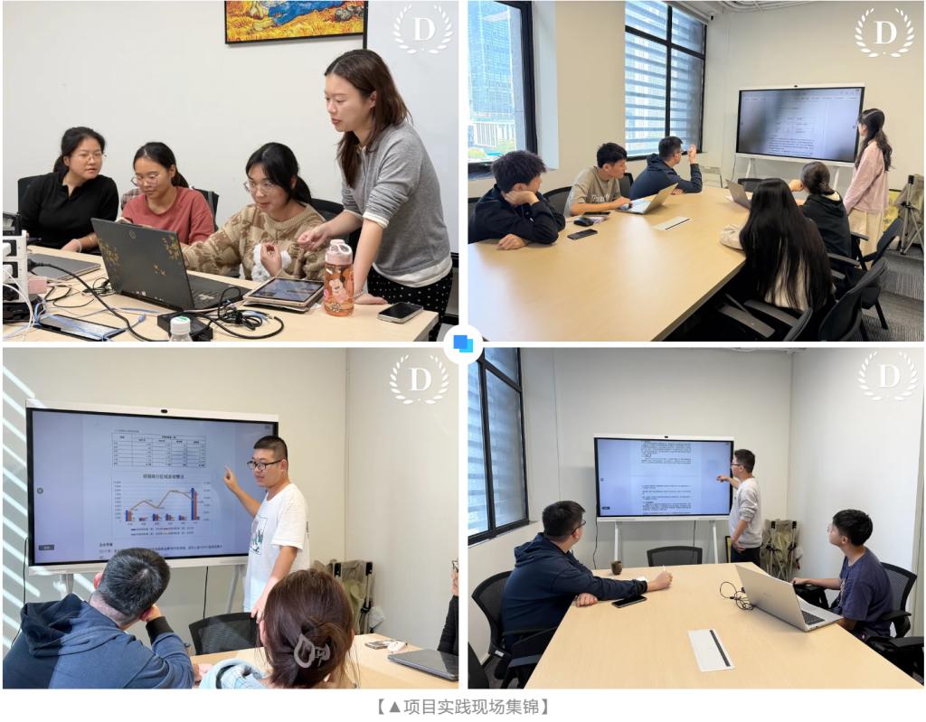 经过一周高强度的沉浸式实践,全体学生均成功完成项目实践任务,并收获了丰富的实践成果与宝贵经验。最终以小组合作的形式制作答辩报告,全面提升了他们的项目管理和分析能力,为职业规划提供新思路。