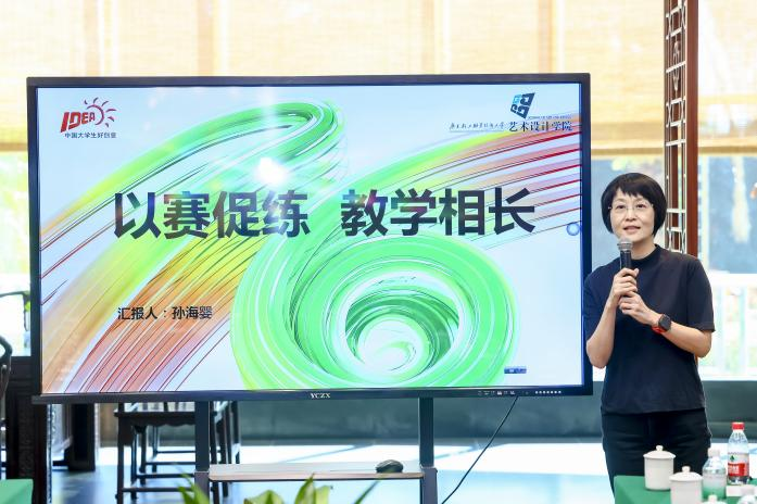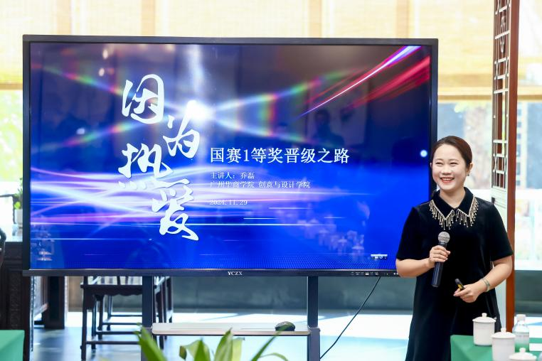 本届赛事优秀组织工作者代表孙海婴老师(广东轻工职业技术大学艺术设计学院)与优秀指导教师代表乔磊老师(威廉希尔中文网站创意与设计学院)先后分别以“以赛促练,教学相长”“因为热爱”为演讲主题,热情分享组织与指导经验。