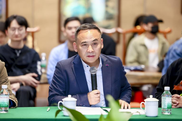 大广赛广东省分赛区组委会秘书长、深圳大学传播学院副院长黄玉波教授进行总结发言。他肯定了发言的老师所提出的想法与建议,认为本次线下的总结交流活动是很好的沟通桥梁,鼓励在座的老师积极分享经验。他表示,组委会是赛事沟通的平台,希望老师们往后可以更多地在数字空间进行交流。