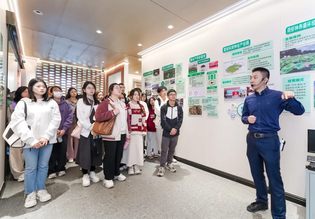 莲花出水农科小镇黑米产学研项目CEO陈泓良先生向研学团详细介绍了农科小镇的情况。莲花出水农科小镇位于广州市增城区中新镇,是广东省科技厅核准创建的广东省级农业科技园区,增城区首个省级农业科技园区,致力建设集种养循环、莲米轮作、虾稻共生、农光互补、农旅结合、农科一体的现代农业科技小镇。