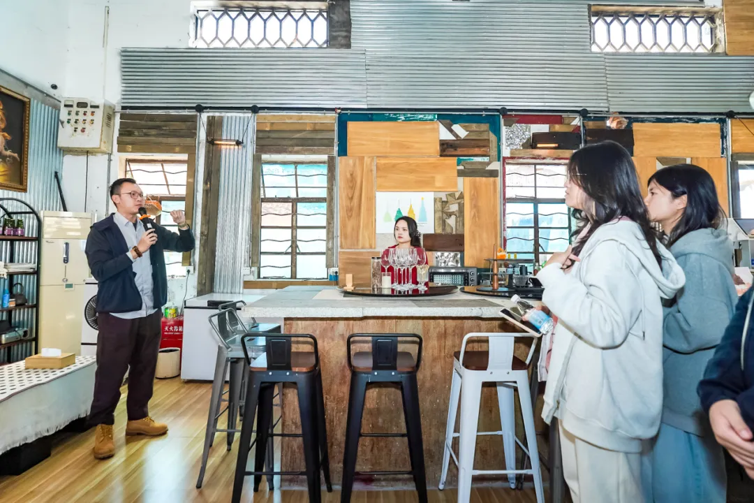 下午,研学团来到云水禅心人文小镇。云水禅心人文小镇董事长助理钟旻弈先生带领师生们参观了小镇。小镇巧妙融合了艺术、文化、旅游与乡村产业发展,充分利用旧工厂空间打造创新业态,凸显地方特色与自然资源优势。期间,研学团到访遗榄无余榄雕微馆、生命树咖啡馆、云水精酿博物馆等乡村新型消费场景与公共文化空间,与青年返乡创业青年作交流,感受乡村发展的广阔前景。