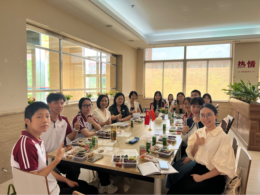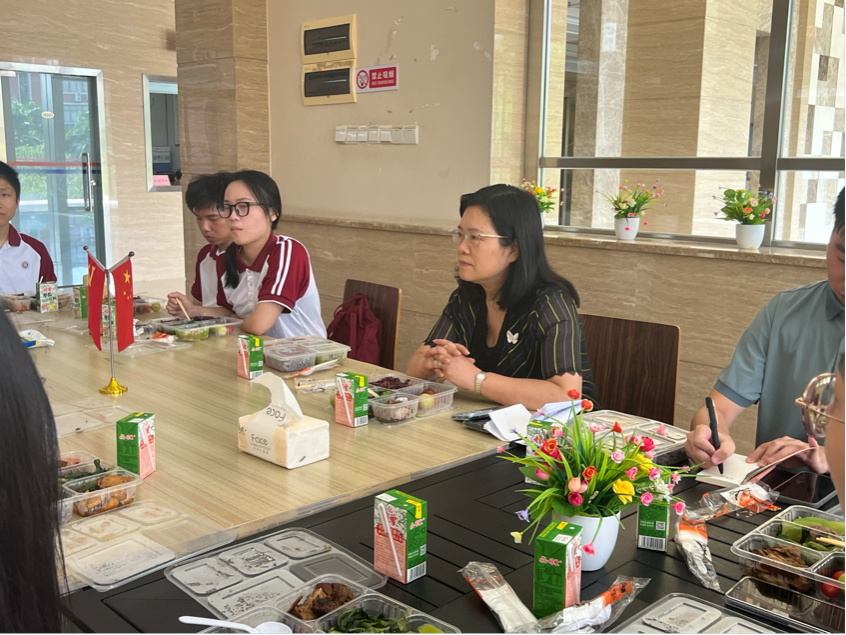 2024年10月15日中午,校领导与学生代表午餐座谈会在行政楼一楼一站式服务大厅成功举办。学校党委书记陈玉欢、副校长吕峻闽、学校顾问王锦秀、后勤保卫处处长杨燕平以及一站式服务大厅工作人员与学生代表们共进午餐。此次午餐会旨在通过轻松愉快的用餐氛围,深入了解同学们的专业学习、生活状况及实际需求,共同为学校的发展与学生的成长贡献力量。