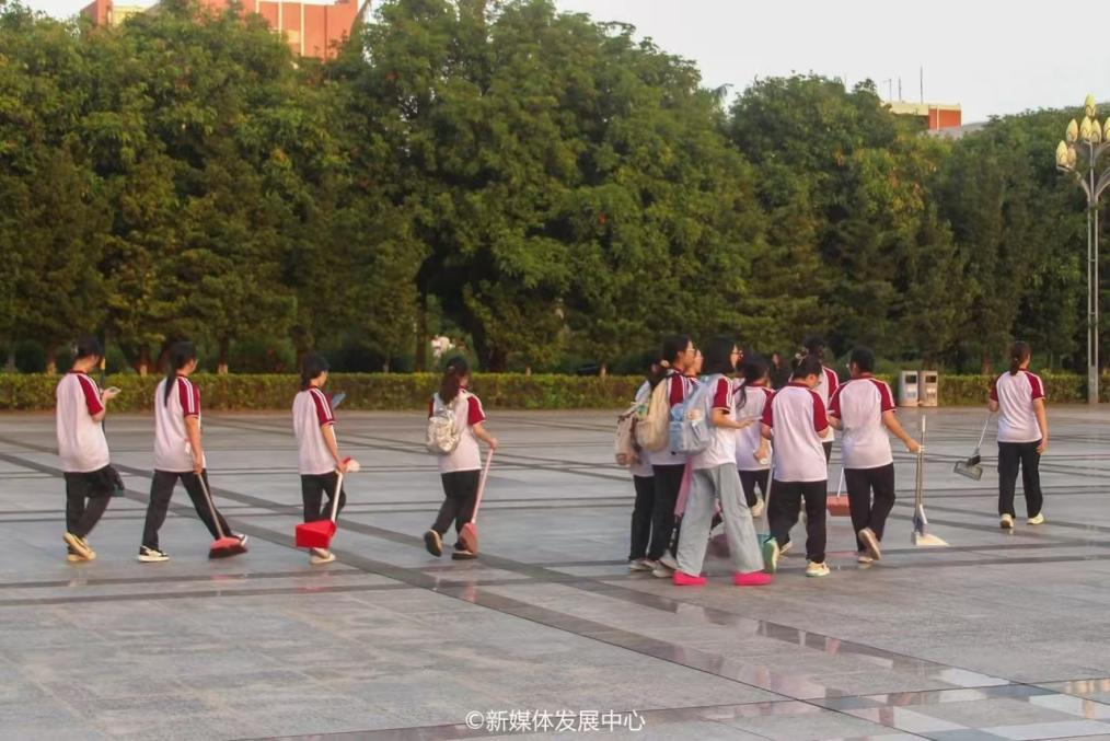 同学们从“心”开始,从“细”着手,对划定区域进行打扫,为校园的清洁与美丽贡献自己的力量。华商青年的辛勤付出不仅让校园环境变得更加美丽与和谐,更在无形中传递了一种正能量与责任感。这种正能量与责任感将激励着更多的师生关注校园环境、爱护公共设施、共同营造一个更加美丽、舒适、和谐的校园环境。
