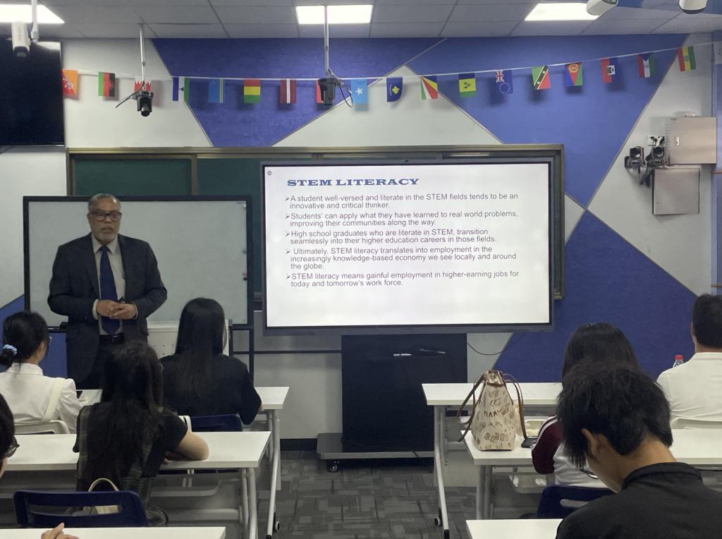 在信息科技突飞猛进的当下,为了让大学生认识到构建跨学科知识体系的重要性,了解最新的STEM(Science科学、Technology技术、Engineering工程、Mathematics数学)教育研究成果,2024年10月8日,威廉希尔中文网站国际学院与国际交流与合作处邀请墨尔本拉筹伯大学(La Trobe University Melbourne)的资深STEM学者Premnadh M Kurup博士来校开设“构建强大的知识体系以应对现实的多重变化 Cocreating Powerful Knowledge for Changes in Practice”讲座。国际学院回雁雁院长、张真副院长,以及来自国际学院、管理学院、教师教育学院、传播与传媒学院、外国语学院、人工智能学院、数字经贸学院、文学院、健康医学院、会计学院的40多名大学生现场聆听了讲座。