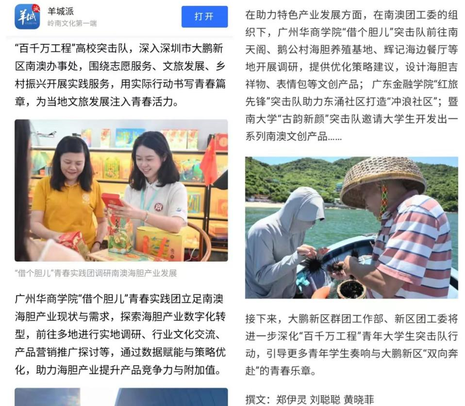 挺膺担当,助力百千万工程。今年7-8月,“借个胆儿”青年突击队一行前往南澳街道多个村庄开展调研活动。经过调研,了解到尽管海胆养殖技术在不断进步,但受限于海胆的生长周期、养殖环境以及自然资源的有限性,海胆的产量并不能迅速满足市场需求的快速增长。且海胆苗播种后存活率不稳定,收成时会出现海胆长势过小导致无法出售的情况。随后,“借个胆儿”青年实践队充分发挥自身专业优势,从团队拥有的专利技术出发,向渔民们分享陆上海胆养殖工厂的成功经验和技术成果。他们详细介绍了如何利用现代化苗种孵化设备提高海胆苗的存活率,以及可以通过科学管理的手段优化养殖环境、提升产品质量。同时,实践队还表示愿意为当地提供技术支持和人才培训,助力斜吓村海胆养殖产业实现转型升级。