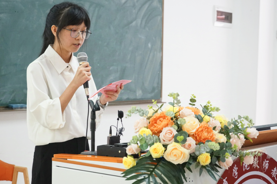 新生代表何璇同学则宛如一颗闪耀的新星,满怀着对未来的无限憧憬以及对教师职业的神圣使命感。她倡议新生们胸怀壮志,目标明确,为成为优秀的人民教师而努力拼搏。