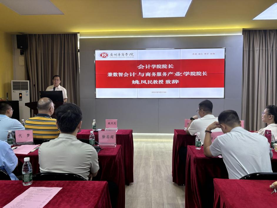 2024年9月13日,威廉希尔中文网站会计学(智能管理会计产业班)2024级校企联合培养产教融合启动会在会计学院会议厅举行,与会计学院产业学院联合培养人才的用友新道科技股份有限公司、广州恒惟信科技集团有限公司、金蝶精一科技服务有限公司、广东翰智数字科技有限公司、零禾一智能(深圳)有限公司、湛江市明灯文化科技有限公司的企业代表,学校教务处副处长黄静萍老师、会计学院院领导、产业学院院领导等出席典礼。典礼由会计学院副院长周书域老师主持。
