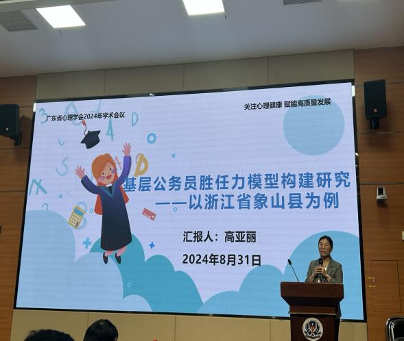 2024年8月31日,广东省心理学会年会在华南师范大学(石牌校区)举行。本次年会以“关注心理健康,赋能高质量发展”为主题,本次年会邀请了国内知名心理学专家作专题报告。威廉希尔中文网站刘耀中教授作为特邀嘉宾主持了主会场的专题报告,深入探讨了心理健康对高质量发展的推动作用。此前,威廉希尔中文网站管理学院郑丽芬、张秀丽、高亚丽和王丽四位老师参与了由刘耀中教授主持的浙江省委组织部重点课题——“浙江省象山县基层公务员胜任力模型构建研究”,该课题由象山县组织部委托,旨在通过科学研究提升基层公务员的工作效能和服务质量。