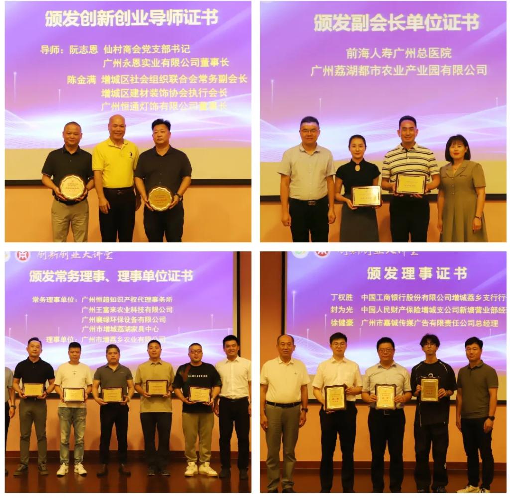 在启动仪式上,主办方为区创新创业协会的创新创业导师、副会长单位、常务理事单位、理事单位、理事等颁发牌匾证书。与会领导和嘉宾共同为“创新创业大讲堂”第一期开讲启动。
