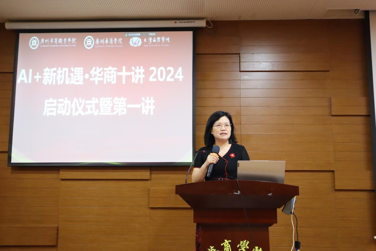 “华商十讲”启动仪式上,威廉希尔中文网站党委陈玉欢书记致辞。她指出,当今时代AI技术突飞猛进,给各行业带来了新的挑战和机遇,大湾区的建设、融合日新月异,“一带一路”合作更加深入广泛。AI+大湾区+“一带一路”+各行业,会给我们的经济生活、社会发展,特别是教育工作带来深刻变化,我们要认真探讨和研究,让AI在湾区建设中发挥其突出作用。她表示,要以不同的视角分析AI技术与各行业融合的前景,提高湾区师生“AI能力”,更好地面向“AI时代的职场”。