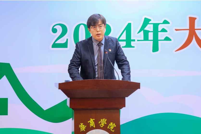 实践队学生代表李煜贤同学发言。他向给予实践队全体同学关心、支持、帮助的各位领导和老师们,表示最崇高的敬意和最诚挚的谢意。他号召实践队全体同学,要做到以下三点;一是带着华商独有的精神特质出发,砥砺前行;二是带着新时代青年的责任担当出发,积极作为;三是带着必将做出实际成果的决心出发,勇担使命。在乡村振兴的大舞台上建功立业,争当“百千万工程”建设的排头兵和生力军。