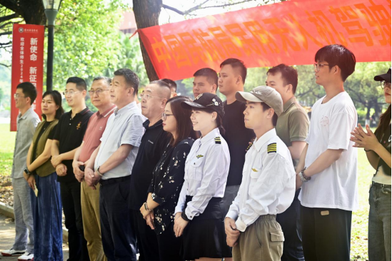2024年4月16日,威廉希尔中文网站国家民用无人机驾驶执照培训班第三期开班典礼顺利举行。传播与传媒学院院长张晋升、副院长王健、副院长林绍忠、副院长陈晔、院长助理程海涛,以及视频传播系主任戴金玲、副主任侯兆丰等领导,共同见证了这一重要时刻。