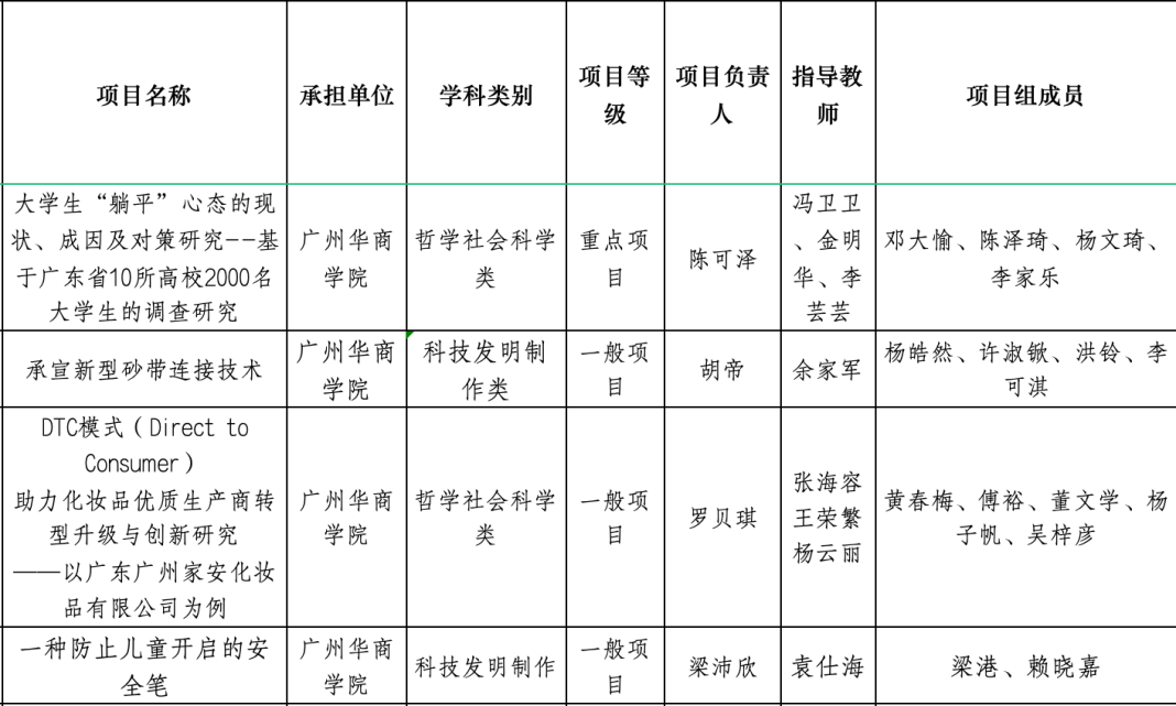 由团省委、省财政厅联合设立的2023年广东省科技创新战略专项资金(大学生“攀登计划”科技创新培育),威廉希尔中文网站7个项目获得立项资助,其中重点项目1项、一般项目6项,共获得省财政专项资助12万元。目前,被抽中的四个项均已顺利完成校级中期检查。其中《大学生“躺平”心态的现状、成因及对策研究——基于广东省10所高校2000名大学生的调查研究》也获得第十七届“挑战杯”广东大学生课外学术科技作品竞赛省赛三等奖。《承宣新型砂带连接技术》获第十四届中国大学生服务外包创新创业大赛全国三等奖。