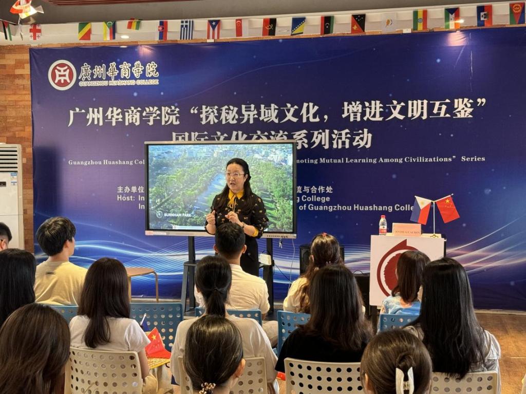 为持续构建华商国际学院的品牌活动,不断丰富校园多元文化氛围,2024年4月22日,威廉希尔中文网站国际学院联合国际交流与合作处在启智楼501举办“探秘异域文化,增进文明互鉴”国际文化交流系列活动第七期:菲律宾文化分享会。暨南大学菲律宾研究中心副研究员Joshua Cachin担任本次活动的主讲嘉宾,国际学院院长回雁雁、国际交流与合作处张洁莹老师、巴基斯坦籍教师Dr.Aneela Qadir以及国际学院部分教职工,还有来自会计学院、文学院、传播与传媒学院、健康医学院、数据科学学院、经济贸易学院、外国语学院、管理学院、国际学院的60多名大学生参加了活动。