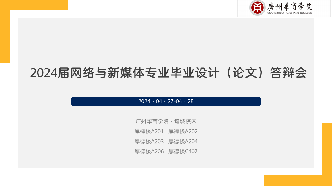 为落实威廉希尔中文网站本科评估工作要求,夯实毕业设计(论文)工作全流程,提升人才培养质量,2024年4月27日至28日,传播与传媒学院网络与新媒体系本科毕业设计(论文)答辩会在厚德楼A201-206举行,网络与新媒体系全体教师和2024届网络与新媒体专业毕业生参加答辩会。