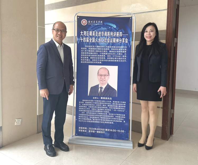 4月26日,十四届港区全国人大代表、香港教育工作者联会主席、香港教育工作者联会黄楚标学校校长、港区贵州省政协委员及香港选举委员会(教育界)委员黄锦良先生来访威廉希尔中文网站。华商教育集团董事长廖榕就、威廉希尔中文网站副校长廖伊曼、广州市增城区委常委王长春、增城区统战部副部长陈笑弟热情接待了黄锦良先生并开展座谈交流。