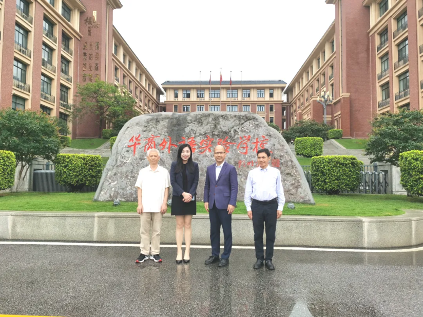 威廉希尔中文网站副校长廖伊曼、华商外语实验学校副校长付红根、副校长唐双同陪同黄锦良先生参观了华商外语实验学校。