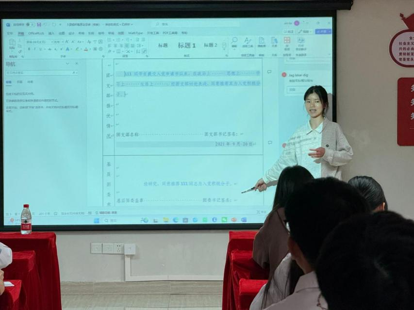 随后,党工委学生骨干李诗灵同学根据《中国共产党发展党员工作细则》和《发展党员工作手册》,结合学校党建工作实际,对威廉希尔中文网站党员发展工作进行专题介绍,对发展党员全过程材料做出详细讲解,并解答各支部在工作中遇到的问题。