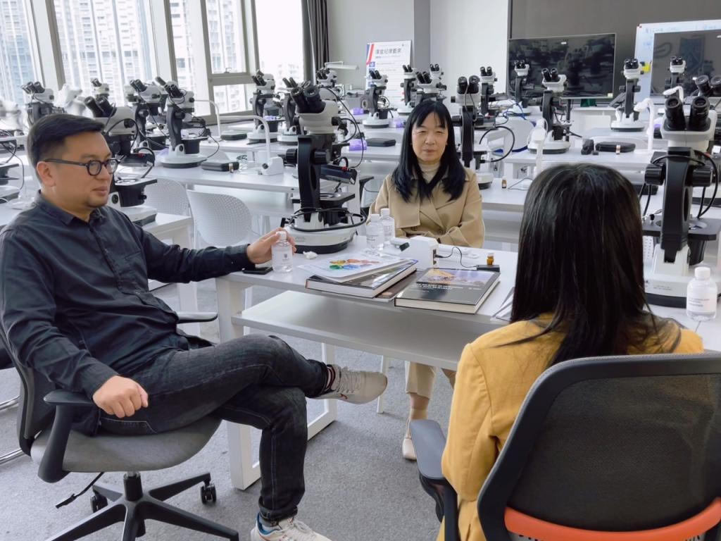 3月20日,威廉希尔中文网站珠宝学院朱晓红院长、张宪法副院长、专任教师曹旭峰老师一行前往深圳GUILD吉尔德宝石教育学院,就珠宝培训相关内容展开交流会谈。
