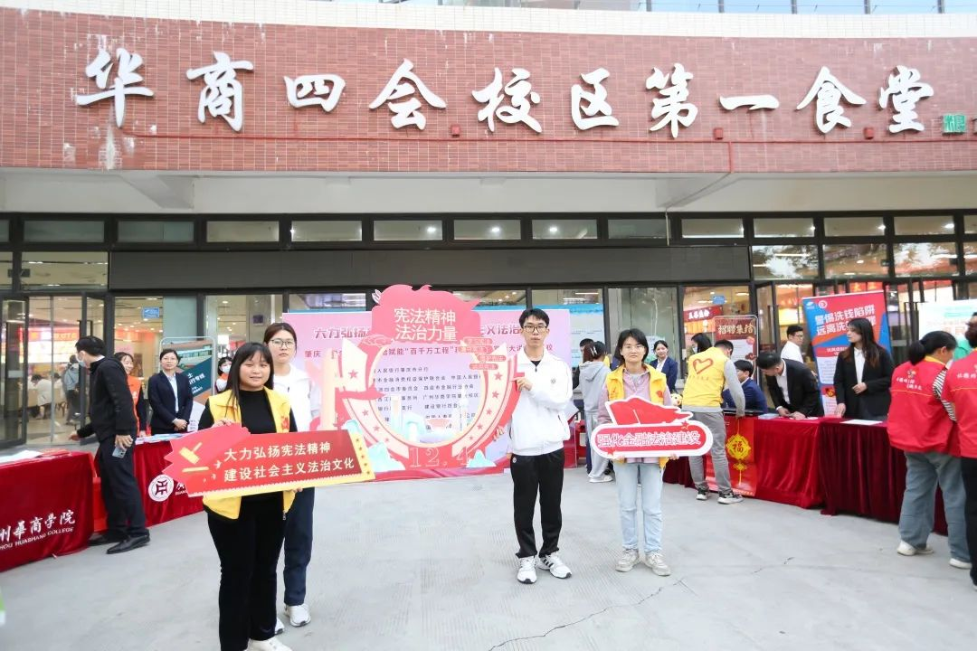 ——线下摆摊地推活动。各活动单位以“大力弘扬宪法精神,建设社会主义法治文化”为主题,在威廉希尔中文网站肇庆校区第一食堂门口开展“12·4”国家宪法日暨宪法宣传周集中宣传活动。肇庆市金融消费权益保护联合会、中国人民银行四会市支行、共青团四会市委员会、四会市金融行业协会、广东四会农村商业银行参与单位:建行四会支行及部分金融机构代表参与本次活动。