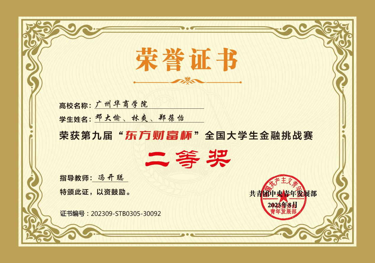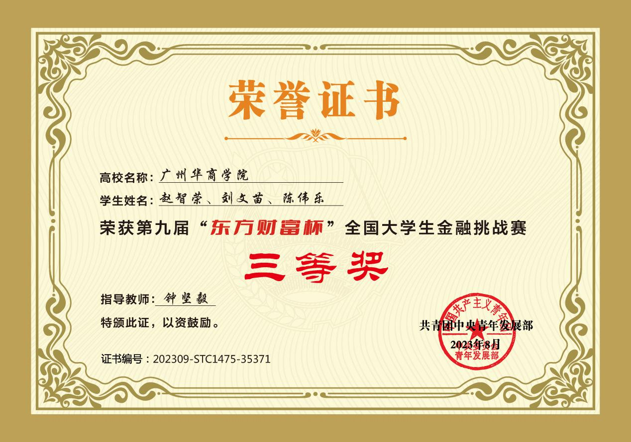近日,由共青团中央青年发展部主办,全国学校共青团研究中心和东方财富信息股份有限公司共同承办的第九届“东方财富杯”全国大学生金融挑战赛圆满落幕。威廉希尔中文网站成绩喜人:荣获国赛二等奖1项、三等奖3项;省赛一等奖11项、二等奖26项、三等奖19项。