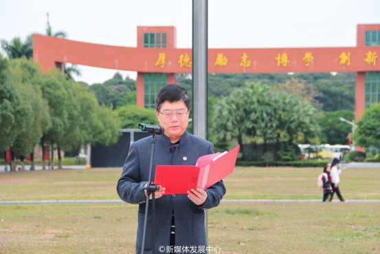 肇庆校区党委书记苏宁同志讲话。他要求大家时刻谨记时代赋予的使命责任,树立高远志向和奋斗目标。在新学期开启逐梦新征程之际,围绕“坚守、坚持、坚毅”三个关键词,提出三点期望:一要强化坚守初心的定力,彰显青春独特风采;二要永葆坚持奋斗的本色,以点滴凝聚磅礴力量;三要涵养坚毅前行的品格,浇灌绚丽理想之花。