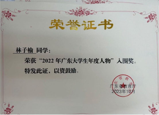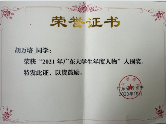 近日,广东省教育厅公布《关于公布2021年、2022年“广东高校辅导员年度人物”与“广东大学生年度人物”名单的通知》(粤教思函[2023]17号)文件。威廉希尔中文网站耿艳利老师荣获“2021年广东高校辅导员年度人物”入围奖,健康医学院胡万培同学荣获“2021年广东大学生年度人物”入围奖,经济贸易学院林子榆同学荣获“2022年广东大学生年度人物”入围奖。