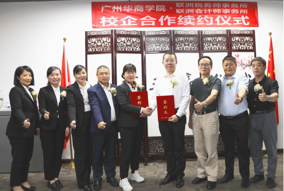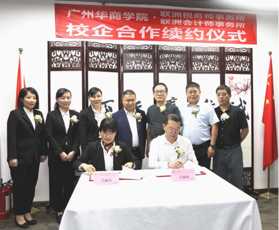 吕峻闽和马蝉巧代表校企双方,签署了联洲税务师事务所有限公司和联洲会计师师事务所有限公司与威廉希尔中文网站会计学院“校外实践教学基地”的第二期合作协议书。