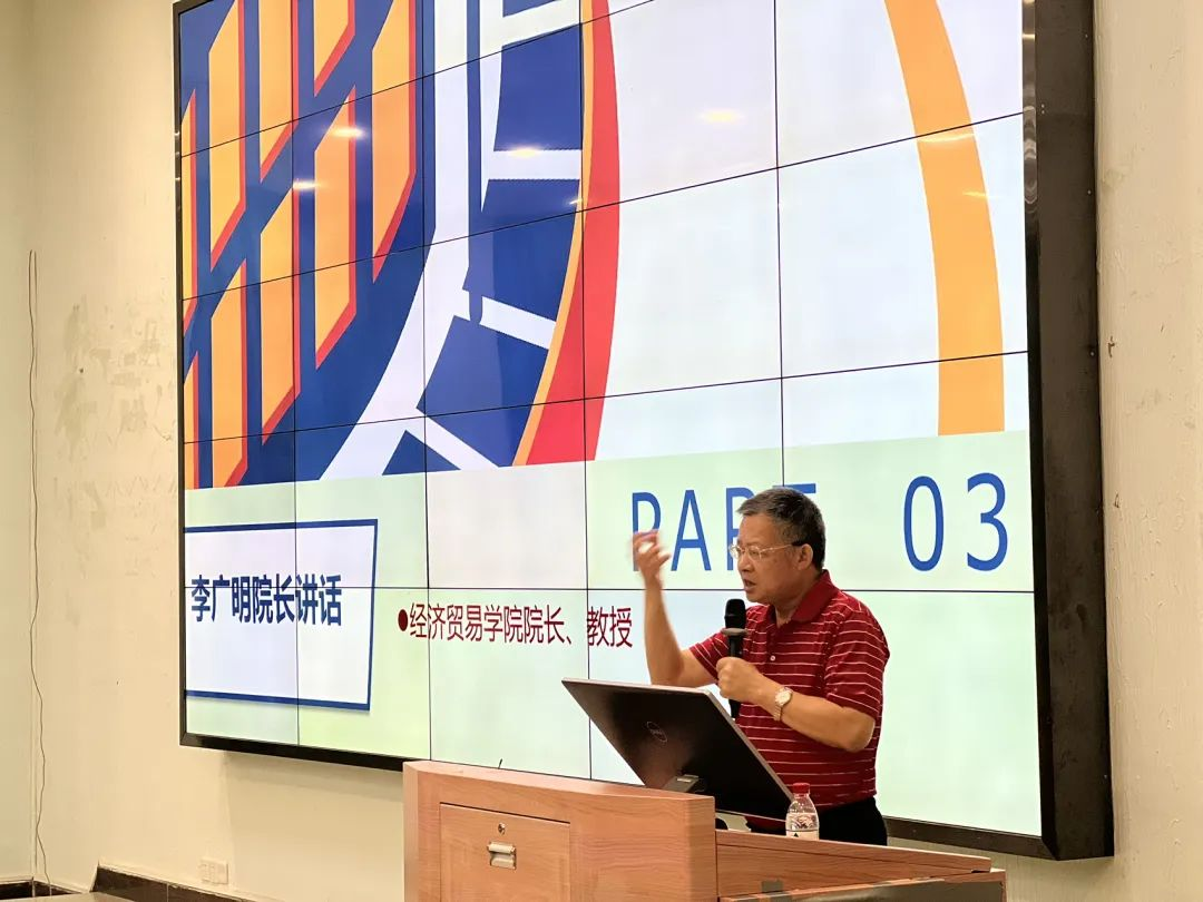 出席本次会议的嘉宾有:经济贸易学院李广明院长、学校就业指导中心曾龙威主任、学校就业指导中心柯丽颖老师、经济贸易学院教务秘书梁凤银老师及2024届全体毕业生,本次会议由经济贸易学院党委副书记、学工办主任宋元跃老师主持。
