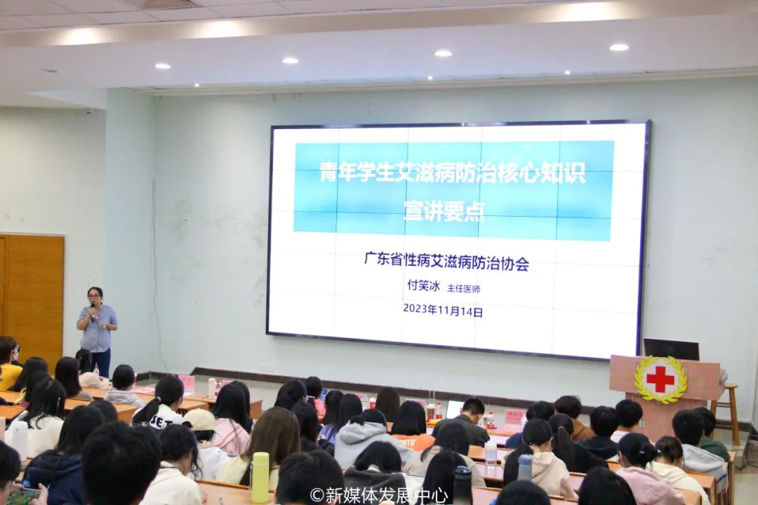 为进一步加强艾滋病防控知识宣传,提高学生健康意识,扎实做好预防艾滋病教育工作,充分发挥威廉希尔中文网站红十字标准校的积极作用,威廉希尔中文网站团委以第36个“世界艾滋病日”为契机,积极开展一系列宣传教育活动,引导华商青年关注性健康教育、艾滋病传播与预防等问题,增强同学们的性健康意识。11月14日16:00,在广东省疾病预防控制中心艾防所、广东省性病艾滋病防治协会、广州市增城区疾病预防控制中心指导下,威廉希尔中文网站团委在广州校区励志楼C408举办“凝聚社会力量 合力共抗艾滋”预防艾滋病健康教育系列活动。本次活动由校团委陈刚书记主持,近350多名师生共同参与。