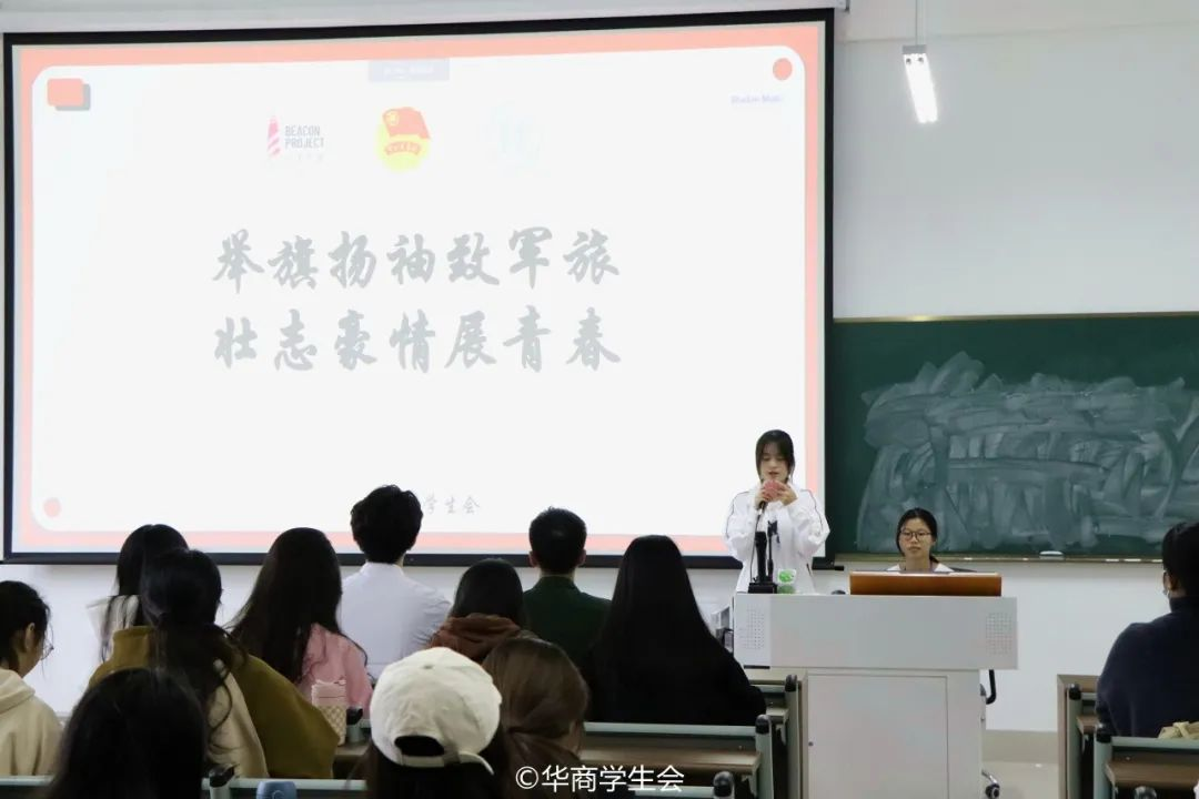 通过两位主讲人的分享,同学们对两位同学以军旅诠释青春,用奋斗书写人生的精神表示敬佩,对军旅生活有了更加深入的了解。生逢盛世,肩负重任,广大华商青年应与时代同步伐,锤炼自己,勇于开拓,积极投身强军建设,在火热的青春中放飞人生理想,用实际行动书写勇气担当,把青春之花绽放在祖国沃土之上!