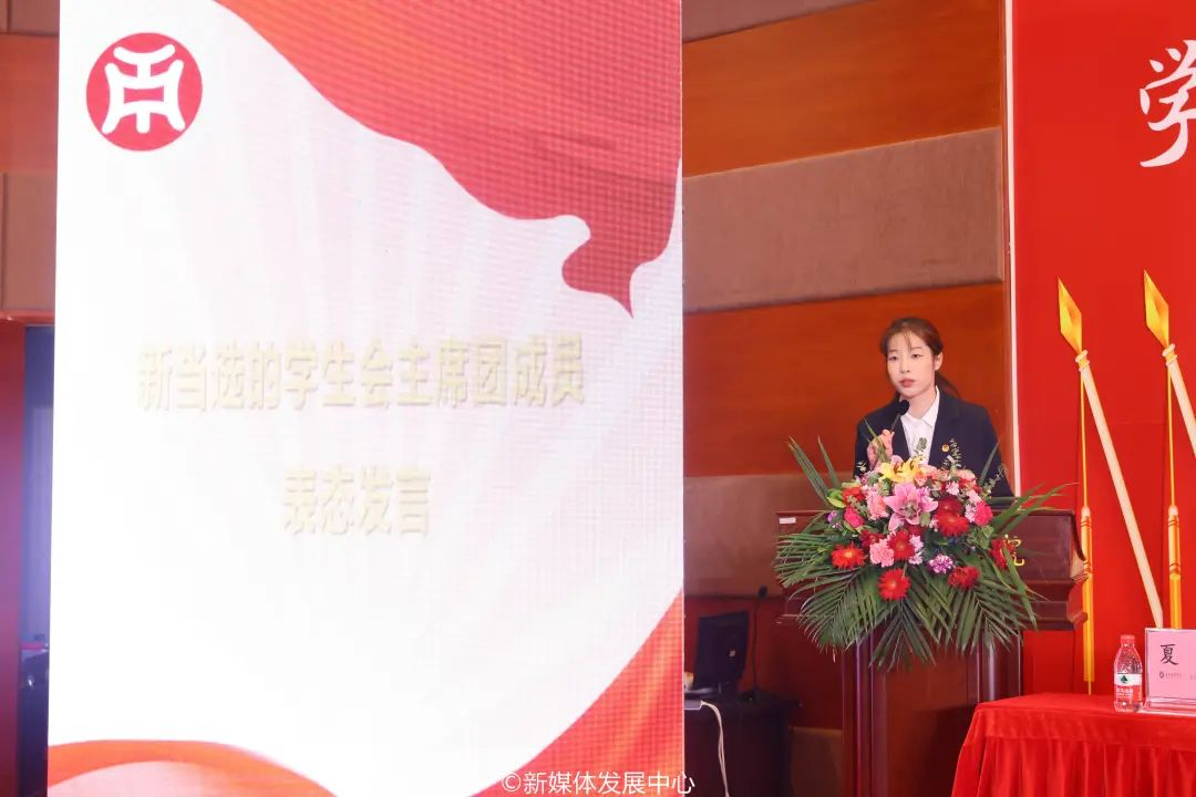 新当选主席团成员尤晓雯表态发言。威廉希尔中文网站第三届学生会将以此为基点,全面学习宣传贯彻党的二十大精神,高举习近平中国特色社会主义思想伟大旗帜,秉承全心全意为同学服务的根本宗旨,坚定“从同学中来、到同学中去”的工作方向,努力提升学生会组织的同学满意度、大局贡献度和社会认可度,树立富有理想、关心同学、清新阳光的组织形象。