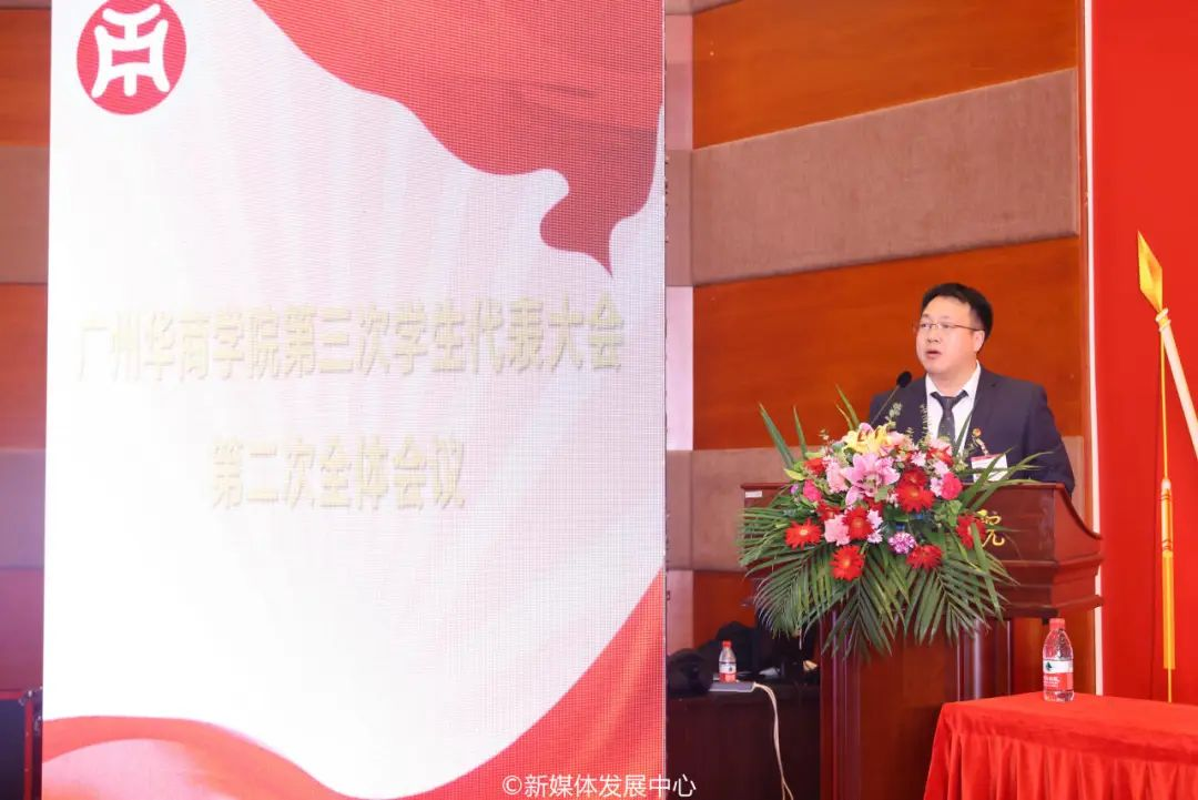 学校党委书记陈玉欢代表学校党委向大会的召开表示祝贺,向全体与会代表、学生会组织表达校党委的关心和期盼。她号召各级学生会吹响深化改革、勇毅前行的青春号角,希望华商青年做到以下三点:一、坚定理想信念,在学思践悟中筑牢精神高地;二、厚植家国情怀,在砥砺奋进中实现全面发展;三、深化组织改革,在身体力行中破浪前行。陈书记对华商青年们寄予厚望,鼓励大家充分发挥青年智慧,做到学思贯通、知行合一,锐意进取,勇毅前行,为学校高质量发展贡献青年力量。