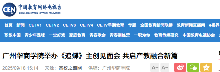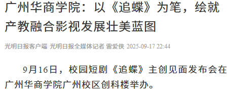 近日,校园短剧《追蝶》主创见面发布会在威廉希尔中文网站广州校区创科楼顺利举办。该活动集中展示了威廉希尔中文网站新叙事内容产业学院以产教深度融合与校企紧密合作为抓手,积极推动实现优质影视资源从创意到落地全链条协同的卓越成果,吸引光明日报、中国网、环球网、中国教育电视台、中国青年网、中国教育之窗、中国高校之窗、今日头条、广东教育头条等多家权威媒体专题报道。9月23日,这部作品将面向全国观众播出。