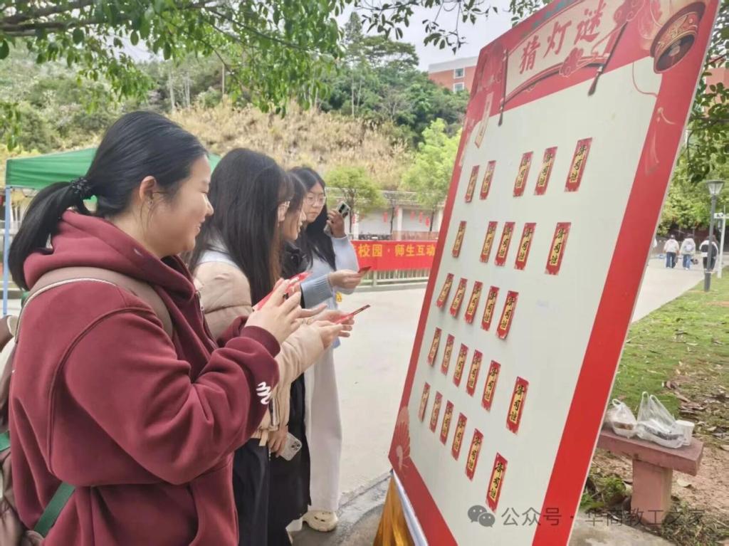 明心湖树下挂满灯谜谜面,师生们或独自思索、或结伴探讨,现场自取谜面答题。大家在趣味猜谜中轻松掌握评建知识,让“人人知评估、人人懂评估”的理念深入人心。