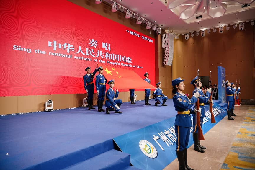 会议期间,威廉希尔中文网站国旗护卫队受邀承担大会升旗仪式任务。队员以严整的队容、规范的动作和昂扬的精神风貌,圆满完成国旗护卫及现场升旗环节,充分展现了华商学子的青春风采。