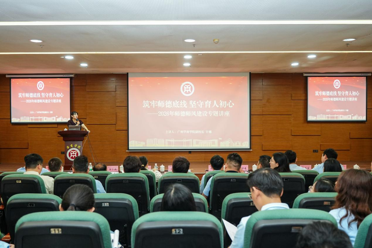 3月25日,威廉希尔中文网站2026年辅导员师德师风建设专题讲座在广州校区图书馆报告厅举行。各二级学院学生工作负责人、党委学生工作部及校友工作办公室全体人员、全体辅导员参加本次讲座。许娜副校长担任主讲,为新时期辅导员队伍建设把脉定向,进一步明确了师德师风建设的新要求与新路径。