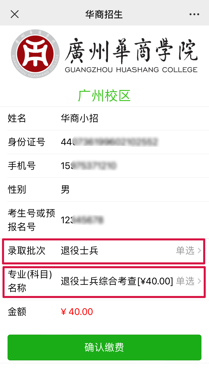 方式2. 进入“威廉希尔中文网站招生办公众号”,选择菜单栏“招生资讯”—“报考费”;进入缴费页面;准确填写个人信息,点击“下一步”;选择退役士兵批次及科目;核对相应金额,无误后点击“确认缴费”即可。