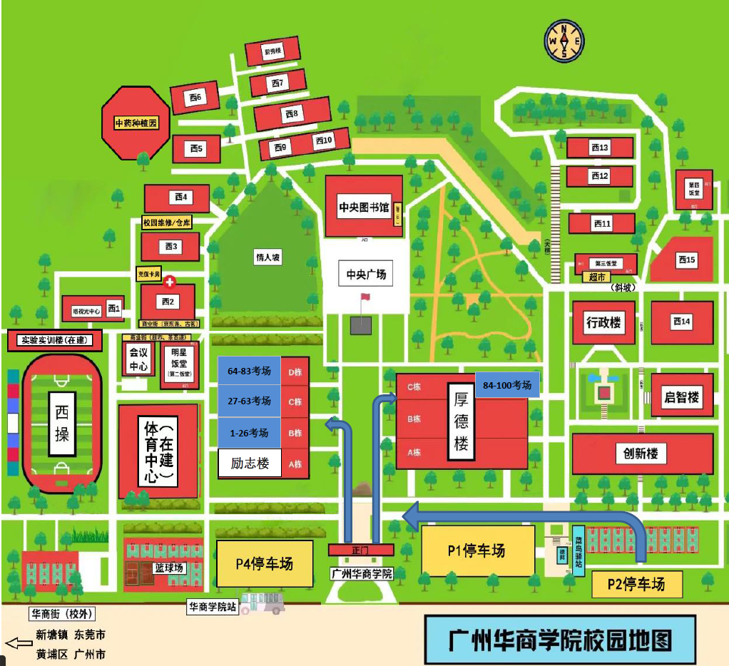 考生应预留充足的时间,提前做好来校乘车路线规划和时间安排,广州市内可通过搭乘地铁(21号线-增城广场站A出口)和公交车(增城9路/增城14路/增城64路/增城65路)等交通工具换乘后,在威廉希尔中文网站站下车。