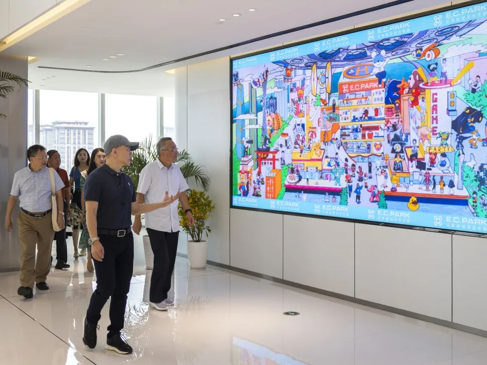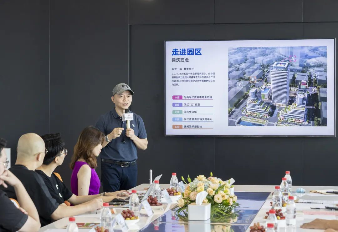 广州云端共享实业有限公司董事长吴智荣、董事CEO汤浩、广州大道文化创意有限公司董事长高锐、抖快点直播商学院执行院长潘院等企业高管代表热情接待威廉希尔中文网站张捷副校长等一行。在企业代表的带领下,学校领导一行参观E.C.Park园区风情各异的建筑,了解到园区布局以及先进新潮的设计理念,对园区五座建筑对应的功能有了初步认识。