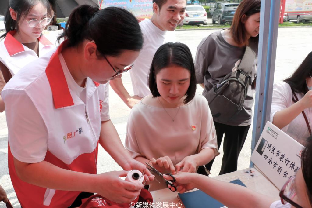 随后,华商青年志愿者协助开展“文博市集活动”。包括协助市民群众进行集章、涂鸦、古籍修复展示和线装书装订、飘漆手作、金绣工艺等多个互动体验。通过非遗手作、文创体验等形式,让四会市民群众在国际博物馆日活动现场加深对本土文化遗产和中华优秀传统文化的了解,增强文物保护意识和文化自信意识,为四会本土文化及文物保护宣传贡献青春力量。