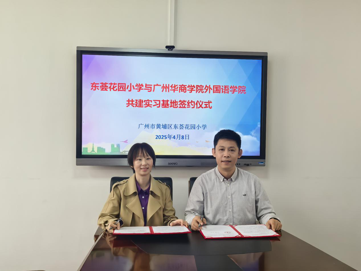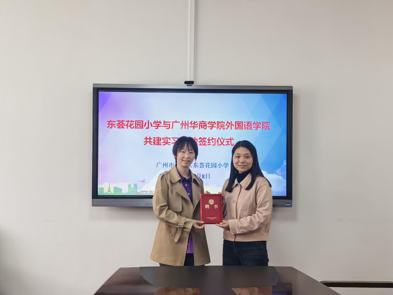 2025年4月8日上午,外国语学院一行前往黄埔区东荟花园小学共同举行共建实习基地挂牌仪式。黄埔区东荟花园小学郭云海书记、李晓宇校长、区笑霞副校长、教导处魏巧璐副主任、沈晓泽老师和实习指导教师,以及威廉希尔中文网站外国语学院甄玲副院长、郭宇洁老师、肖茜老师和本学期实习生共同参与了此次活动。