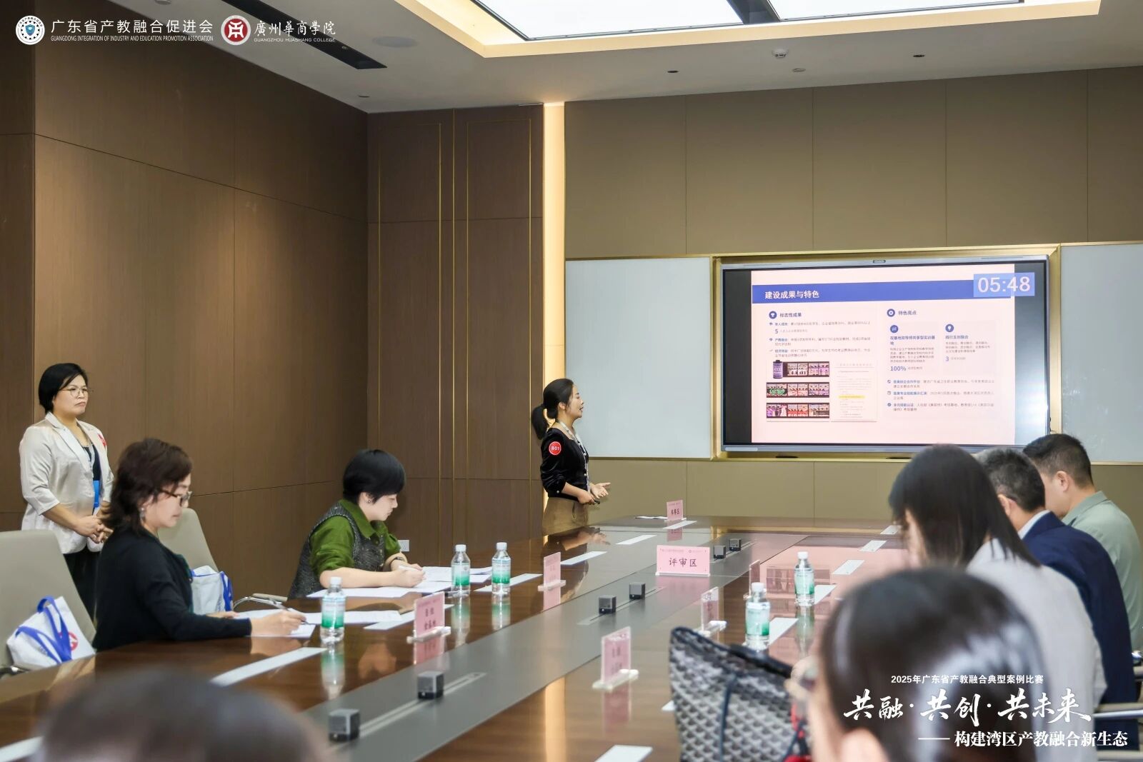 决赛现场,对照企业重大技术攻关和技能人才需求,各参赛团队“揭榜挂帅”,通过“10分钟PPT展示+5分钟答辩”的形式对案例进行了全面系统的阐述。从案例背景剖析到项目实施路径规划,从核心问题攻坚到模式创新成效呈现,充分展现了广东产教融合从“形式融合”向“标准制定、人才培养、技术创新等多层面全方位融合”的实践路径。