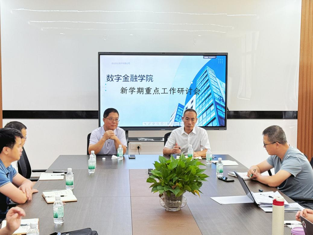 2025年9月2日上午,数字金融学院在创新楼218会议室召开新学期重点工作部署会,专题研究专业优化转型、合格评估及招生工作。学院领导班子成员、院长助理、各专业负责人、系主任(副主任)、行政教辅人员、辅导员及双创秘书等参加会议。会议由张纯威院长主持,刘少波副校长出席会议并督导指导。