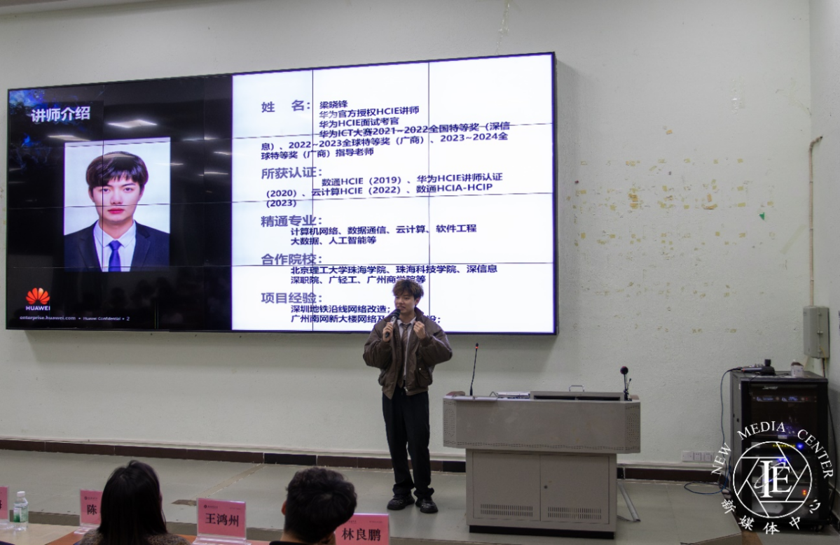广州腾科网络技术有限公司作为华为的重要合作伙伴,也参与了此次分享会。公司代表陈聪经理表示,通过校企合作模式,可以有效弥补传统教育与实际需求之间的差距,为学生提供更贴近市场需求的技能培训。此外,他还介绍了即将在学校内开设的相关课程安排,并鼓励同学们积极参与学习。