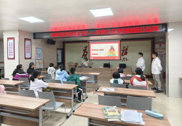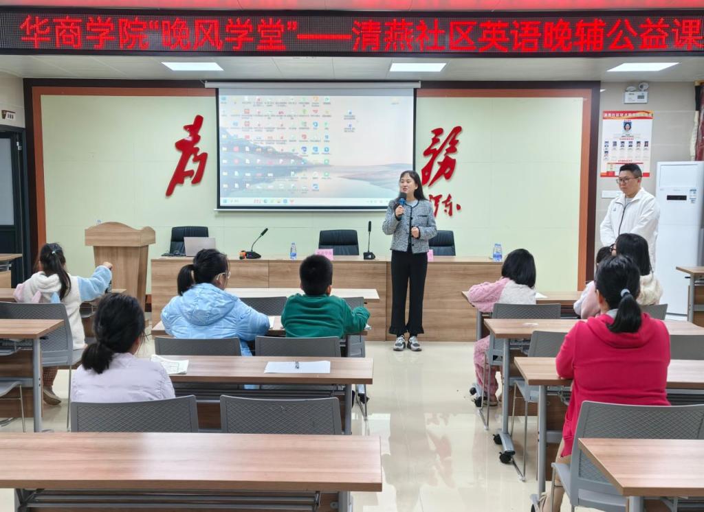 当晚,增城区清燕社区服务站灯火通明,由威廉希尔中文网站外国语学院发起的“晚风学堂——华商校社英语晚辅公益项目”首场活动正式启动。清燕社区居委会书记邓镜波同志、外国语学院项目负责人郭宇洁老师及志愿者们共同参与,为社区青少年带来了一场别开生面的英语学习体验。